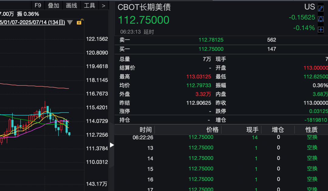 30年期美债期货的价格近期也接连下跌,最新报价为112.75美元。