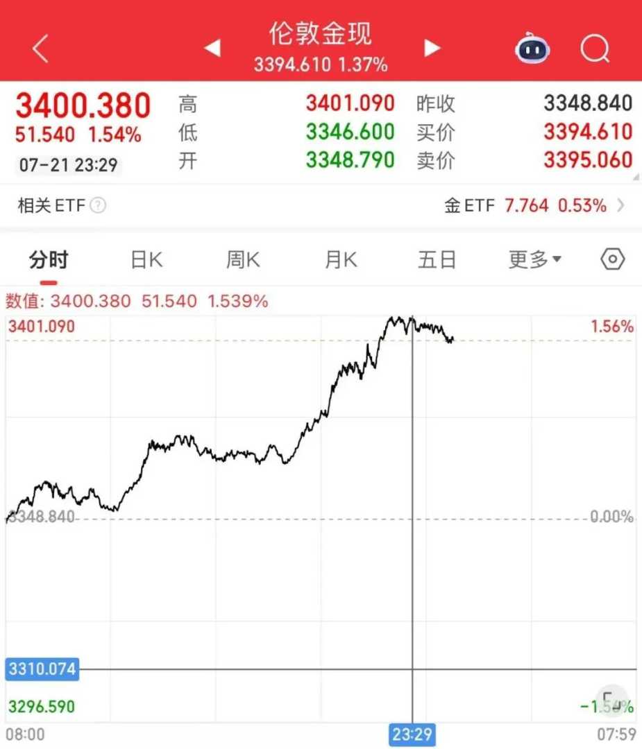 金价突破3400美元/盎司,22日晚,伦敦金现货突破3400美元/盎司,日内涨1.48%,伦敦银现货涨超2%。市场不确定性增强,利多黄金价格,美联储降息传言升温,加剧市场不安情绪。
