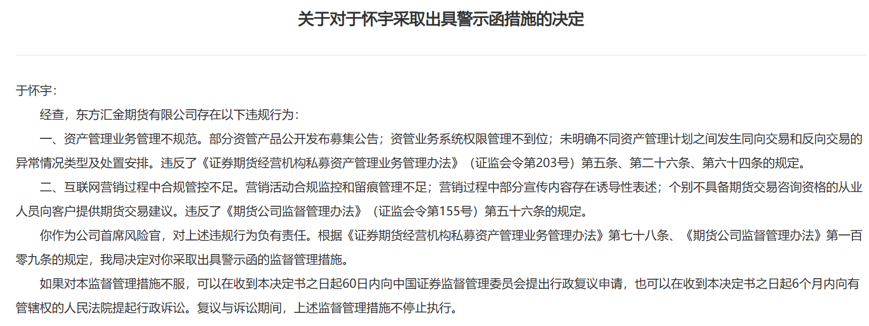 东方汇金期货遭罚:资管与互联网营销违规成焦点