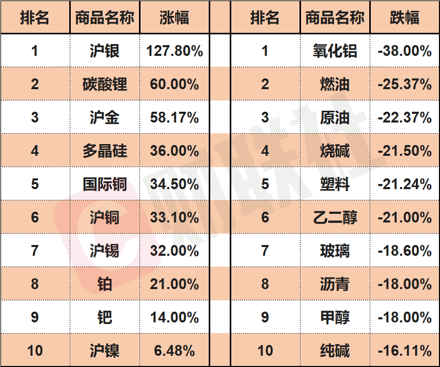 2025年国内期货市场年度收官,贵金属、有色表现惊艳,多品种涨幅显著。受地缘政治冲突、美联储降息等因素影响,沪金、沪银领涨市场。此外,新上市的铂、钯期货上演过山车行情。而跌幅方面,受国际原油下跌带动,内盘化工品普跌。