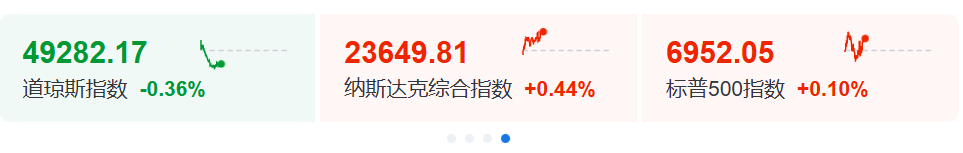 1月7日晚间,美股三大指数涨跌不一,道指跌近200点,纳指涨约0.4%,标普500指数接近平盘。