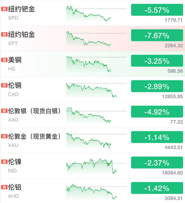 贵金属在此前上涨后出现回调,全线大跌,白银跌破每盎司80美元,黄金结束三连涨;铜价也从历史高位回落。