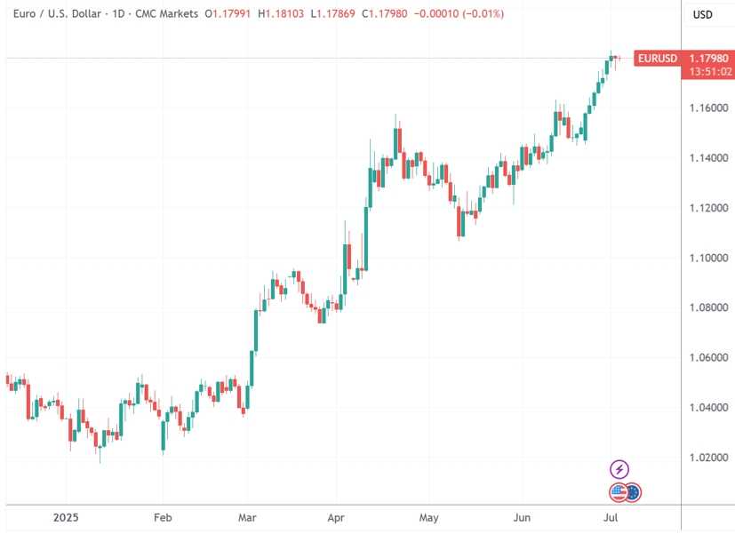 (今年欧元持续对美元升值,来源:TradingView)