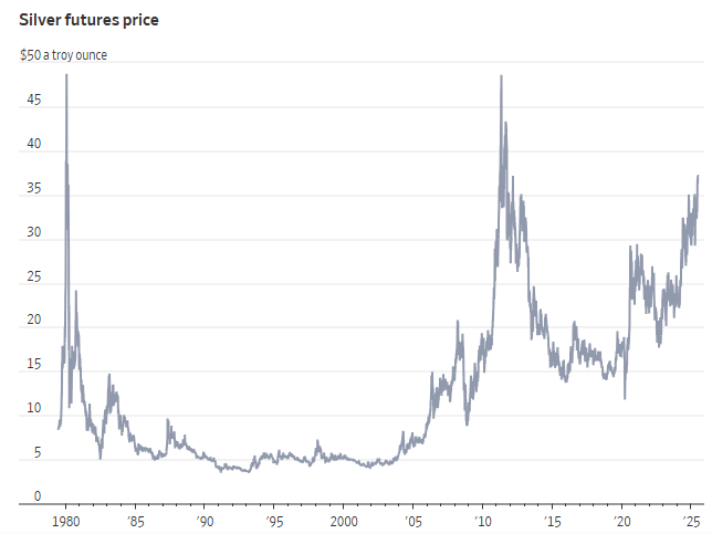 2025年上半年,白银价格涨幅与黄金相当,年内累计上涨27%,触及十多年高位。美国投资者心态分化,部分囤积白银,部分则变现。白银需求大部分来自工业领域,ETF投资者持续押注白银价格上涨。