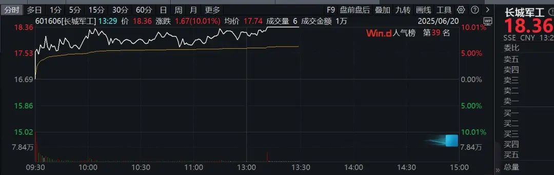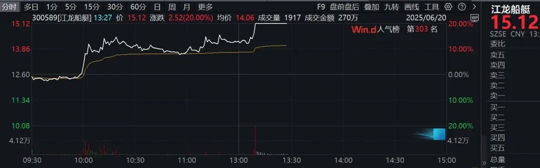 午后军工股异动,其中,江龙船艇直线20%涨停,长城军工走出三连板。