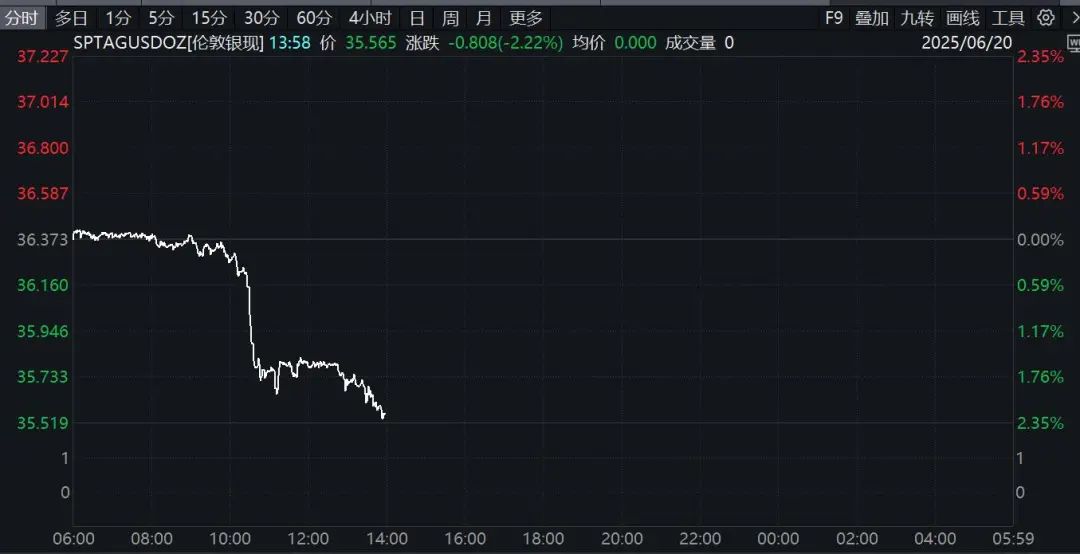 今日黄金、白银均走弱。现货白银盘中跳水,一度跌超2%,白银市场波动受国际局势与需求预期双重影响。