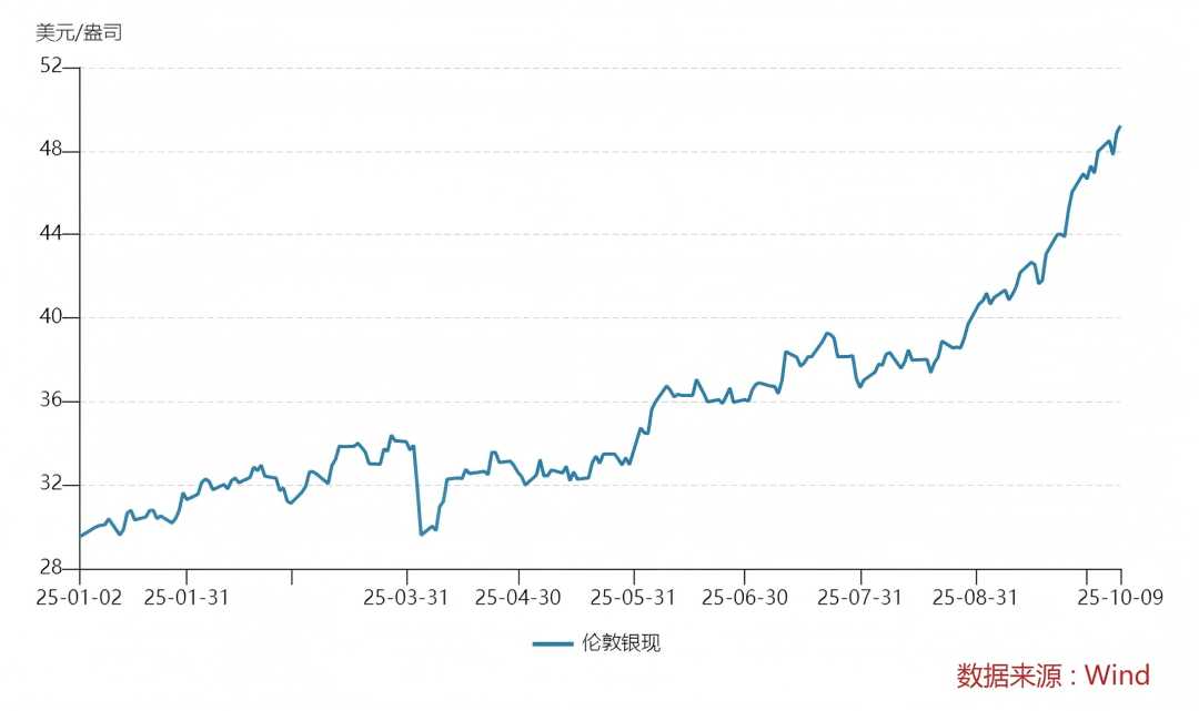 10月9日现货白银历史首次突破50美元/盎司,创近14年新高。今年以来累计涨幅超70%,核心驱动为金融属性与产业需求双轮。机构预测未来三个月或在47-55美元区间震荡上行。
