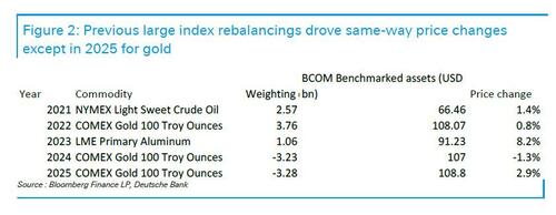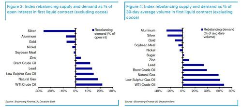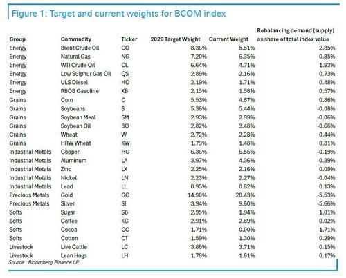 早在去年年底,道明证券分析师Daniel Ghali曾预言,银价将大幅下调。在周四亚洲时段,白银等金属价格出现明显“跳水”。而彭博大宗商品指数(BCOM)的年度权重再平衡即将到来,这将影响白银等商品的权重。德意志银行贵金属分析师Michael Hsueh指出,此次BCOM权重调整对贵金属不利,对原油有利。权重调整带来的供应量最大的依次是白银、铝和黄金,需求量最大的依次是WTI原油、天然气和低硫柴油。根据ETF敏感度估算,240万金衡盎司黄金的抛售对金价的影响可能在2.5%至3.0%之间。