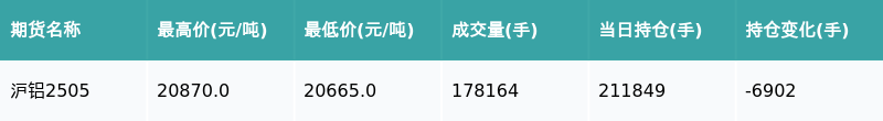 沪铝期货主力合约收涨0.56%,收盘报20815.0元/吨,但日内资金流出1.11亿元,显示出市场谨慎情绪。以下是沪铝及其他相关期货品种的详细数据对比。