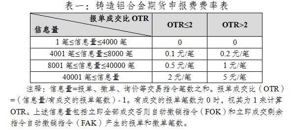 铸造铝合金期货对客户信息量收取申报费,具体标准见下表。
