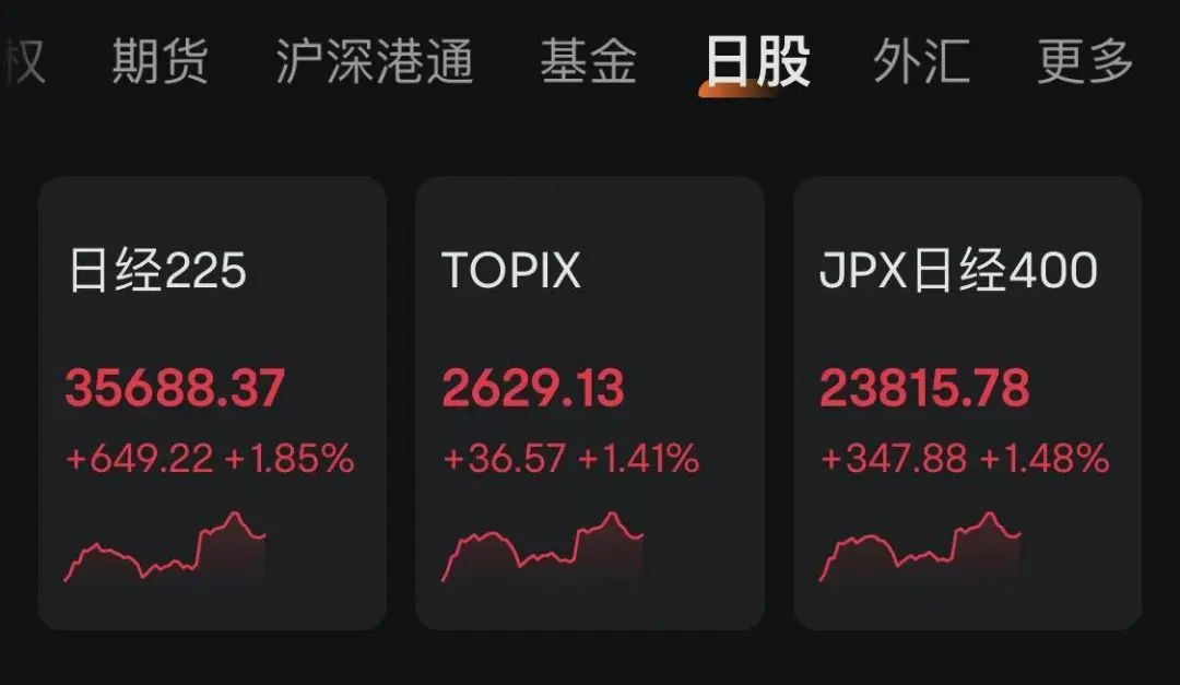 今日,日股、韩国股市、A股及港股等市场也纷纷走高。截至发稿,日经225指数上涨超过1.8%,韩国综合指数上涨超过1%,恒生指数上涨超过1%,上证指数微涨0.15%。