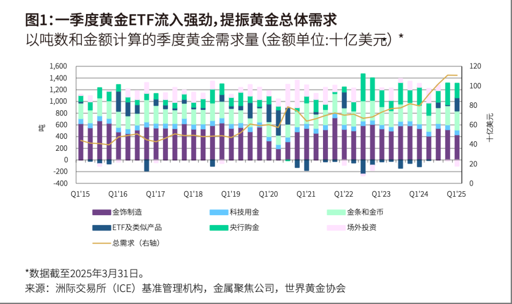 2025年一季度全球黄金需求创纪录,中国市场ETF需求激增