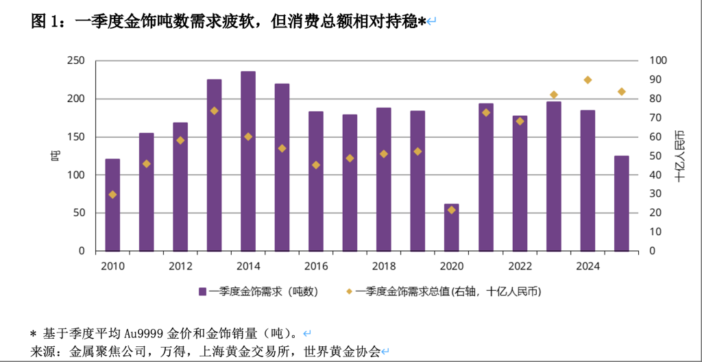 世界黄金协会指出,在全球不确定性的背景下,中国消费者更看重金饰作为饰品与投资品的双重属性。这种双重属性或将为金饰销售提供一定支撑。此外,若未来出台降息等经济刺激政策,或将带动整体消费支出回暖。