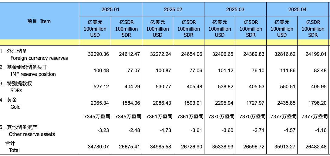 5月7日,中国人民银行最新公布数据显示,中国2025年4月末的黄金储备量为7377万盎司,较上月末的7370万盎司增加了7万盎司,这一增长趋势已持续六个月,彰显了中国对黄金资产的持续青睐。
