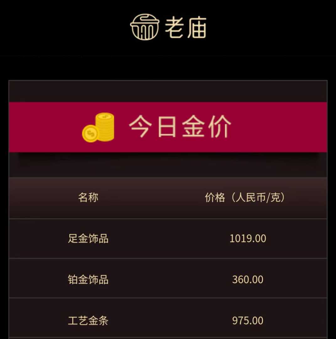 老庙黄金当日的金价显示,其工艺金条售价为975元/克,若以每克830元的价格买入这批金条,还能省下145元/克。