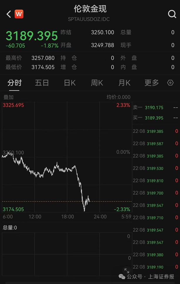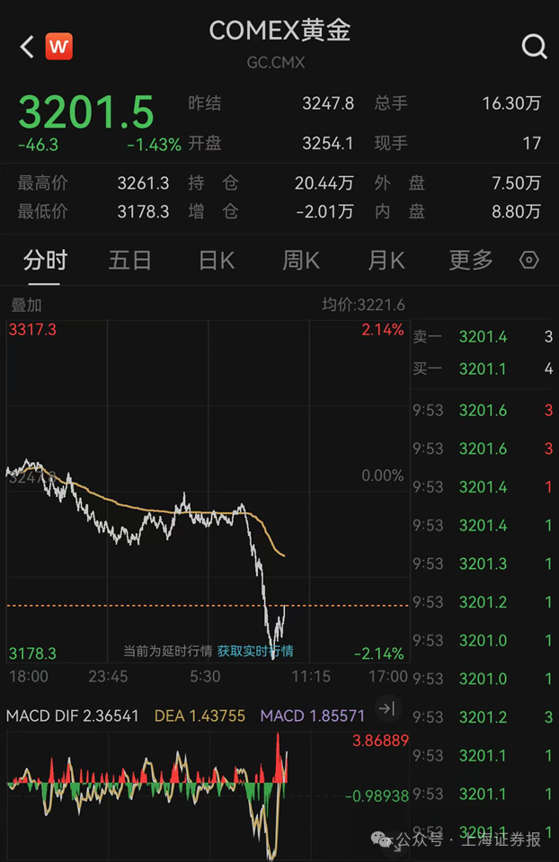 得益于全球贸易关系缓和,市场避险情绪降温,周三,国际金价持续下行。截至发稿,现货黄金跌破3190美元/盎司大关,日内跌幅近1.9%,创下一个月来新低。COMEX黄金期货同样下跌1.4%,报价3201.5美元/盎司。
