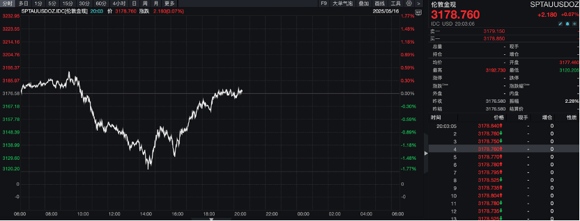此外,5月15日,COMEX黄金也大幅下跌超过2%,续创逾一个月来的低位至3123.3美元/盎司。中银国际期货分析师指出,中美关税战结束,地缘政治局势缓和,以及美国获得中东国家军火大单等因素,共同导致美元指数企稳,避险情绪消退,黄金价格因此受挫回落。