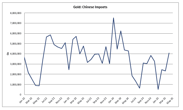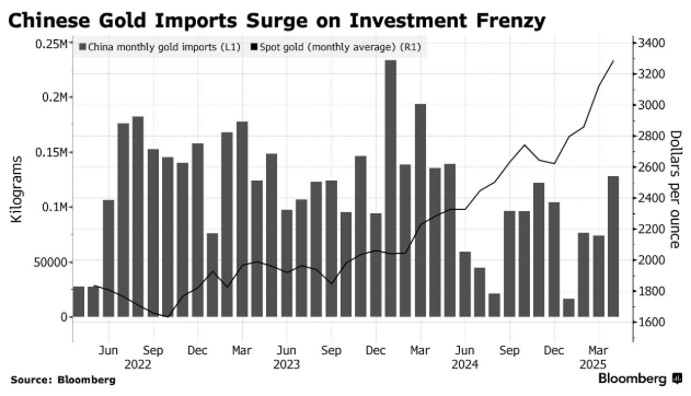 高盛指出,中国黄金进口量(剔除央行购金部分)在4月份反弹至一年高点,这与上海黄金交易所较伦敦金银市场协会(LBMA)的定价优势引发的套利活动密切相关。在黄金价格整体维持高位的情况下,实体黄金需求仍保持强劲。
