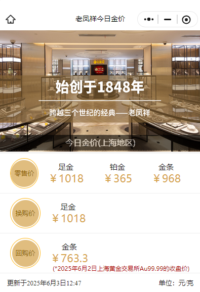 此外,老凤祥足金饰品报价也紧随其后,达到1018元/克,相比前一日1000元/克上涨18元,金价上涨势头明显。