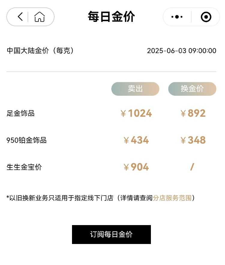 今年以来,国际金价已累计上涨约25.5%。6月3日,国内品牌首饰金价迎来重大调整,多个品牌足金饰品价格重新站上每克千元大关。其中,周生生足金饰品价格上调至1024元/克,周大福则调整为1020元/克,老凤祥金价也上涨至1018元/克。