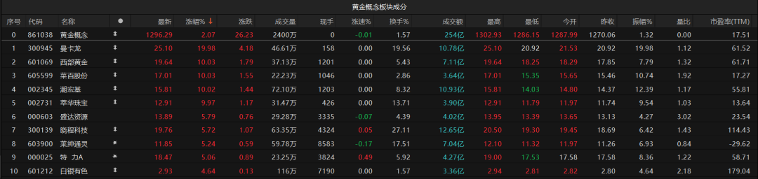 黄金概念股走高,金价波动引关注