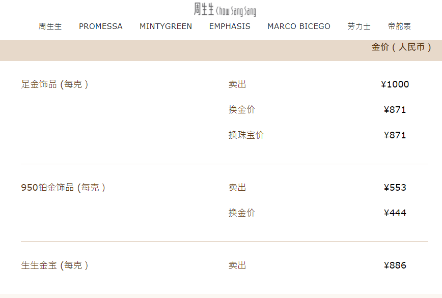 7月1日,周生生足金饰品报价为1000元/克,较前一日每克上涨15元;老凤祥金饰价格为999元,较前一日上涨12元;老庙黄金足金饰品报价为995元/克,较前日每克上涨11元;周大福金饰报价为998元/克,较前一日上涨9元。