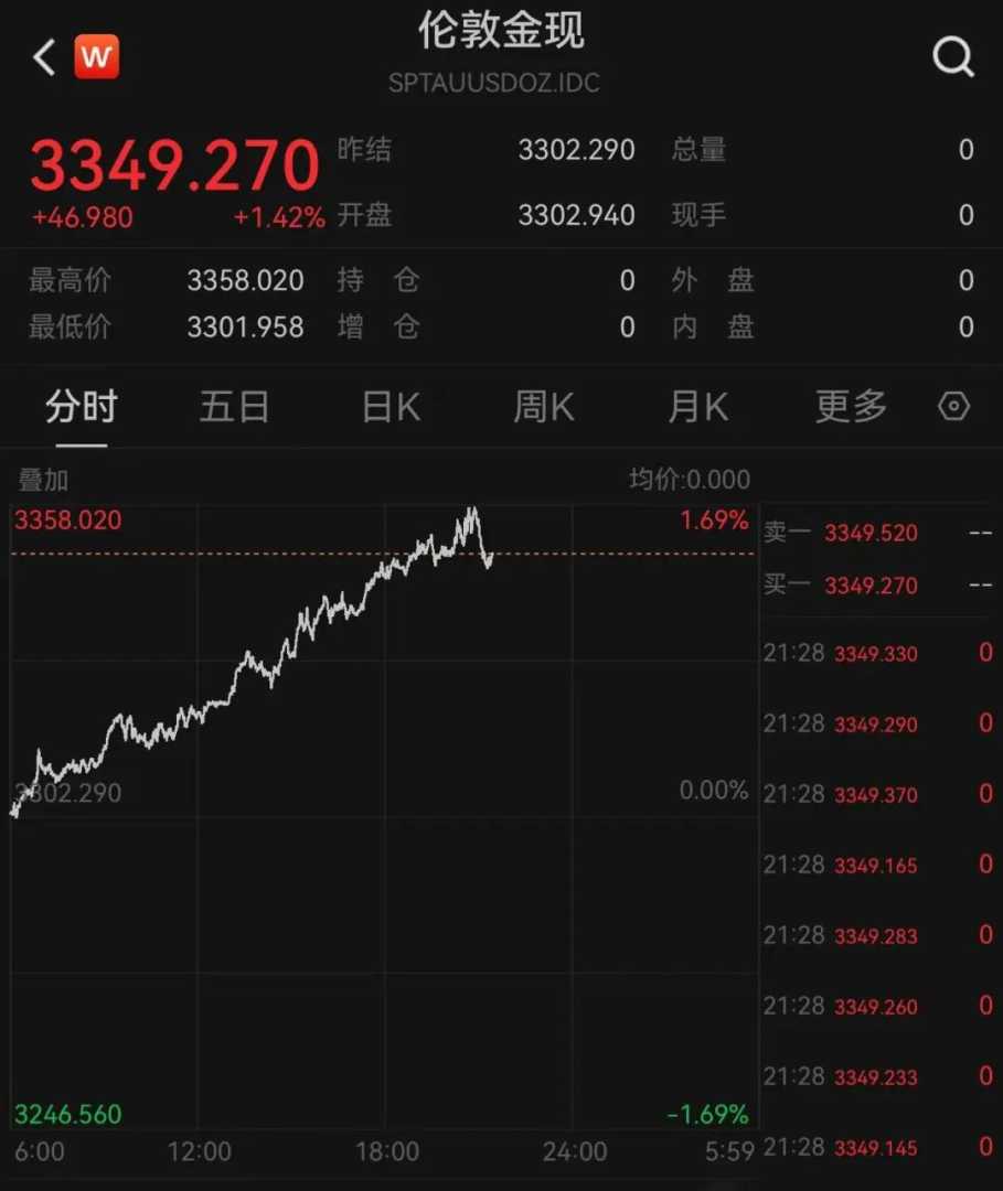 7月1日,国际金价出现转涨行情。据wind数据,截至发稿,现货黄金涨1.43%,报3349.38美元/盎司。受此影响,国内金饰价格同步上扬,周生生足金饰品报价再次达到1000元/克,较前一日上涨15元。
