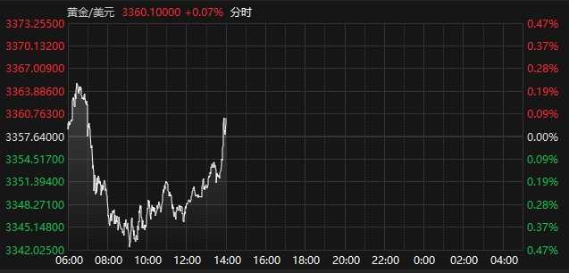 7月3日国际现货黄金短线走高 价格报3360.10美元/盎司