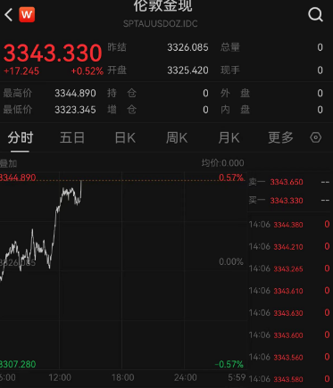 截至发稿,现货黄金涨超0.5%。