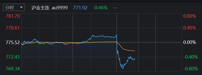 7月7日,黄金期货市场明显走弱。纽约金主力合约日内一度跌近30美元,最新报3326.2美元/盎司。国内沪金主力合约开盘直线下跌,开盘10分钟内跌近7元,最新报771.92元/克,黄金期货市场波动加剧。