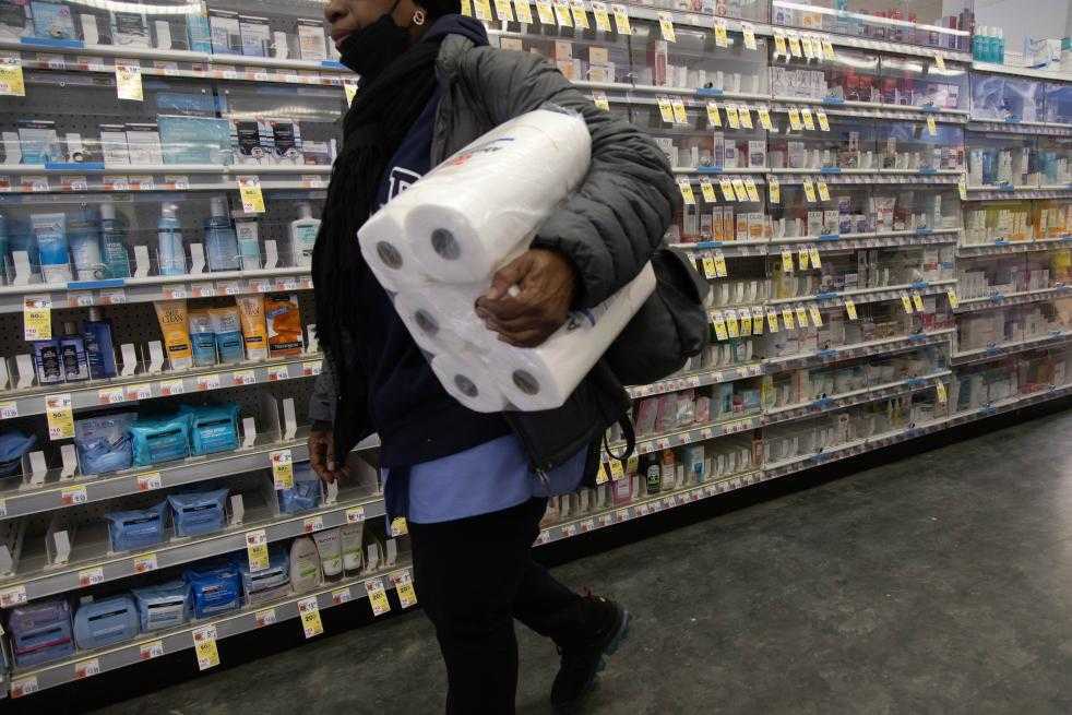 3月28日,顾客在美国纽约市一家药房购买卫生纸。新华社发(郭克摄)
