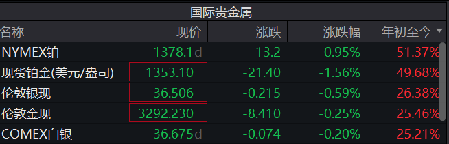 截至7月9日15:47,主要贵金属涨幅