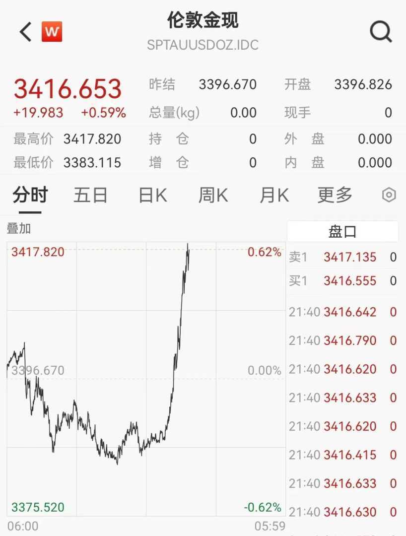 7月22日晚间,伦敦现货黄金短线直线拉升,截至发稿,报3416.65美元/盎司,现货白银也突破7月14日以来的新高。消息面上,欧盟与美国关税谈判未见成效,欧盟将启动反制措施。巴西总统也表示,若特朗普不改变想法,“关税战”或将打响。