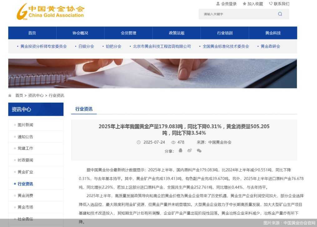 2025上半年黄金市场:产量消费量双降,黄金ETF规模大涨