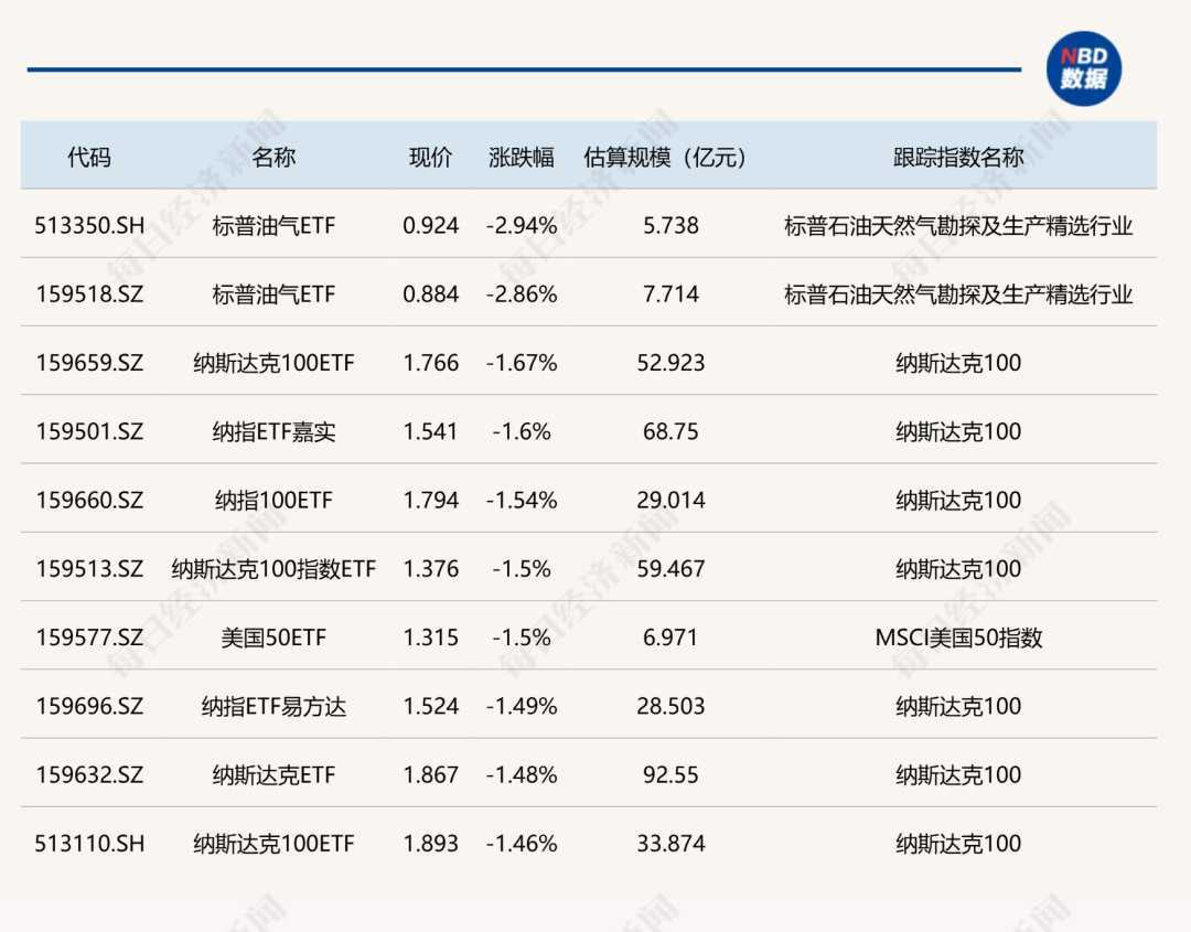 下跌方面,标普油气ETF跌近3%。