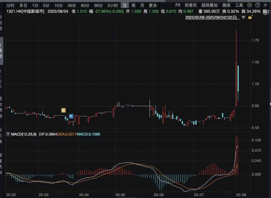 消息面上,中国新城市2025年8月1日发布公告称,公司董事会会议将于2025年8月22日举行,以审议公司及其附属公司截至2025年6月30日止六个月的未经审核综合财务报表,并考虑派付中期股息(如有)。