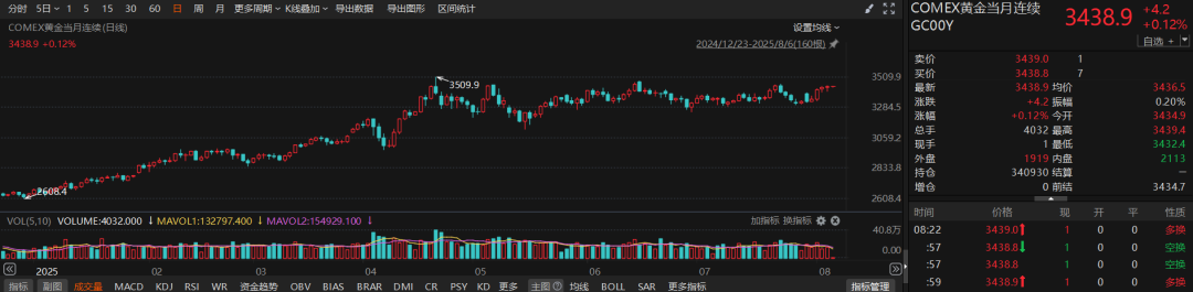 近期,金价升势持续。截至发稿,COMEX黄金的价格达到3438.9美元/盎司,重新站上3400美元/盎司的关口。