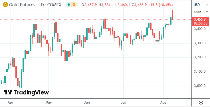 周五(8月8日),纽约商品交易所12月交割的黄金期货价格一度刷新历史纪录,因美国政府将对重量1公斤和100盎司的金条施加进口关税。