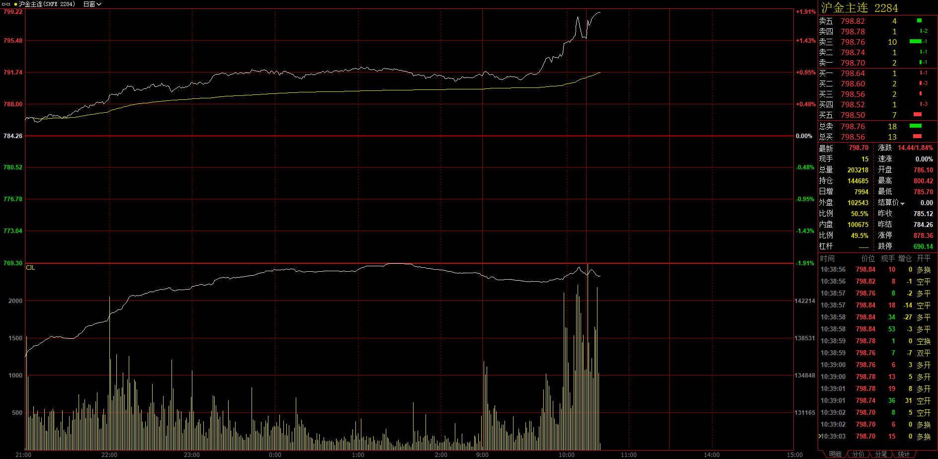 沪金主力合约日内涨约2%,高点达800.42元/克。黄金作为传统避险资产,价格波动受关注,对投资者资产配置有重要影响,长期投资价值显著。