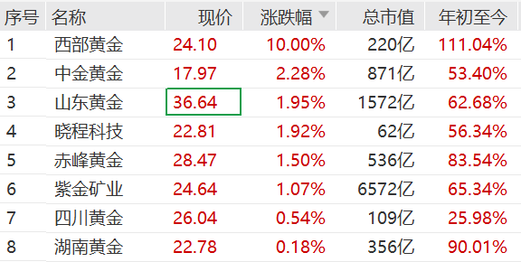 9月2日,A股贵金属板块盘初走强,西部黄金涨停,中金黄金、山东黄金、赤峰黄金跟涨。黄金市场的强势,也带动了相关股票的上涨。