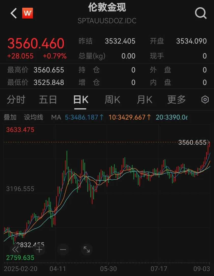 9月3日晚间,现货黄金首次升至3560美元/盎司上方,再创历史新高,年内累涨逾35%。同时,现货白银价格也突破每盎司40美元。上金所调整黄金、白银延期合约交易保证金水平和涨跌停板比例。世界黄金协会正寻求推出数字黄金,改变黄金实物市场。