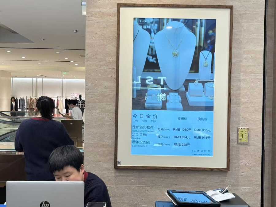 随着国际金价连日上涨,国内金饰价格也升至历史新高位。9月4日下午,记者来到第一八佰伴,多家黄金珠宝品牌一早就更新了足金首饰的价格。老庙足金饰品报价1057元/克,谢瑞麟、潮宏基的金价为1060元/克,最高价为周生生品牌,报1062/克。