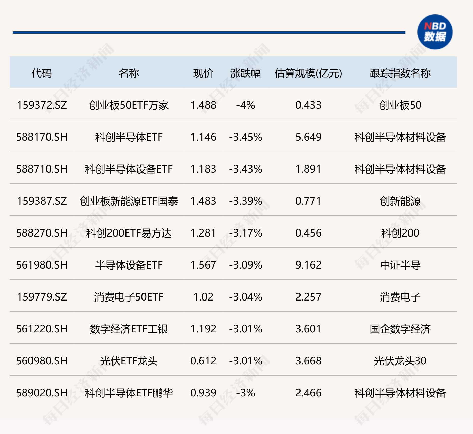 下跌方面,多只半导体相关ETF跌超3%,市场波动较大。