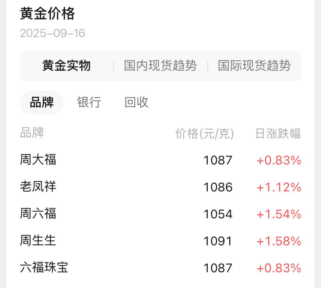 9月16日,受国际金价续创新高影响,国内多家品牌金饰价格再度攀升,但涨跌幅度较大,黄金消费市场呈现分化态势。其中,周生生足金饰品价格一举突破每克1090元。截至发稿,周生生报价每克1091元,日内涨幅1.58%,黄金饰品价格波动加剧。