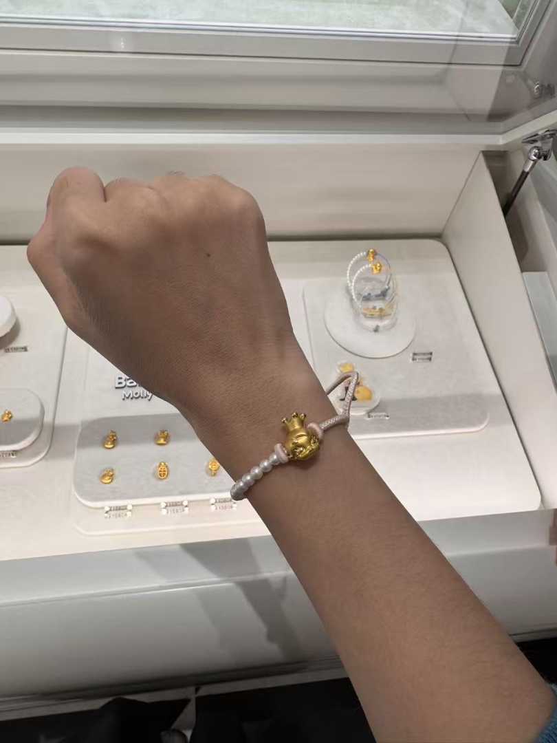 在“popop”微信小程序上,“Baby Molly足金系列”产品丰富多样,涵盖黄金摆件、金豆、串珠、吊坠、“宇宙金条”四大类黄金制品。据店员介绍,“Baby Molly足金系列”是目前泡泡玛特推出的唯一足金系列,自上市以来,吸引了不少年轻人的关注。“很多顾客都是冲着Molly 这个IP来的,尤其是年轻女孩,她们对这种有IP特色的黄金饰品接受度很高。”店员说道,凸显了IP在黄金饰品销售中的重要作用。