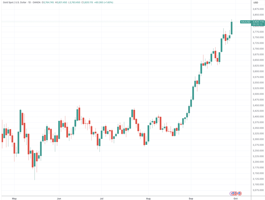 就在发稿前不久,伦敦现货黄金价格又摸到3830美元/盎司的历史新高,日内涨幅接近70美元。黄金的节节攀升也带来了一个纸面上的新纪录——美国财政部的黄金储备价值正式突破1万亿美元,黄金投资(SEO关键词1)迎来新机遇。