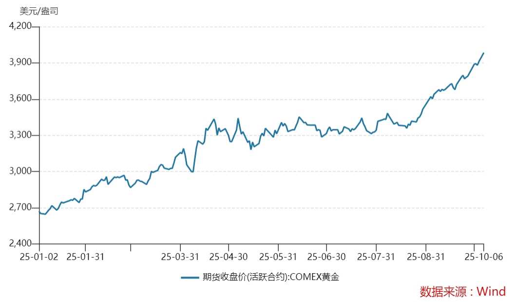 10月7日,在国庆假期接近尾声之际,COMEX黄金期货价格突破4000美元/盎司,黄金投资迎来高光时刻。截至发稿,涨幅收窄至0.22%左右,报3985美元/盎司。