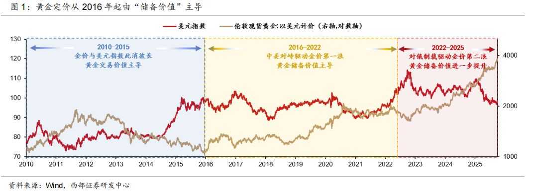 美元信用裂痕扩张,金价将开启长期牛市?美国国家公信力流失之下,美元信用体系迎来前所未有的考验,全球央行储备格局也在不断演变。西部证券研报提及,2016年以来,黄金定价从“交易价值”主导切换到“储备价值”主导,随着美元信用裂痕持续扩张,金价将开启长期牛市。