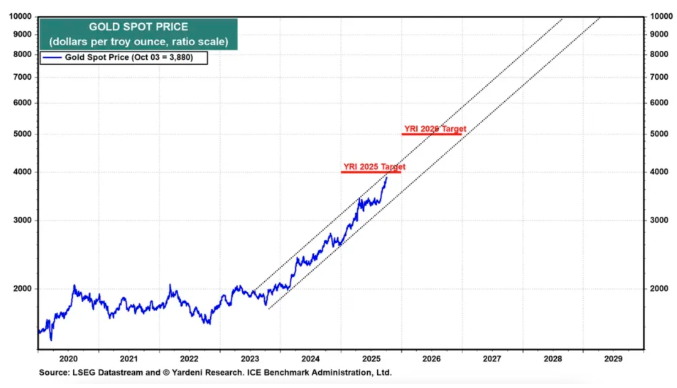 Yardeni表示,“我们目前的黄金目标是2026年达到5000美元。若维持当前涨势,2030年前或将突破1万美元大关。”这一明确目标为市场提供了重要参考。