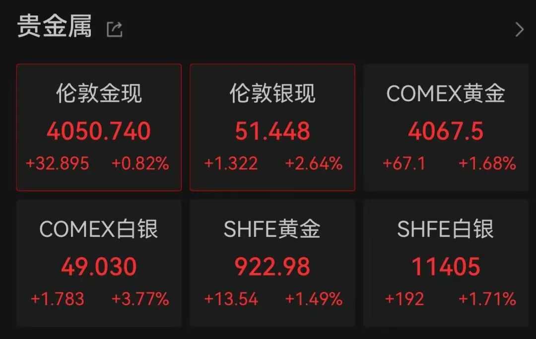 10月13日上午,全球避险情绪升温,伦敦金现货价格(黄金价格)再次创造历史,一度升至4060美元/盎司上方。黄金作为避险资产,其强势表现带动A股黄金概念股整体上涨,西部黄金、赤峰黄金等黄金股逆势走强,黄金投资价值凸显。